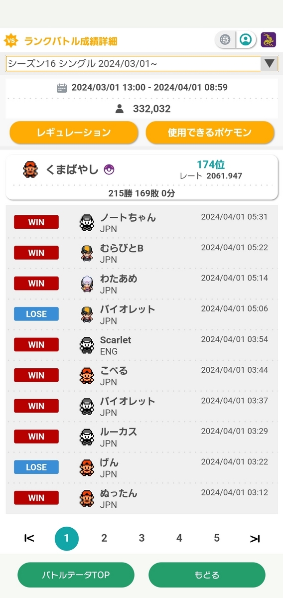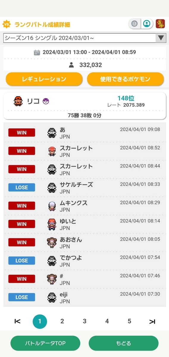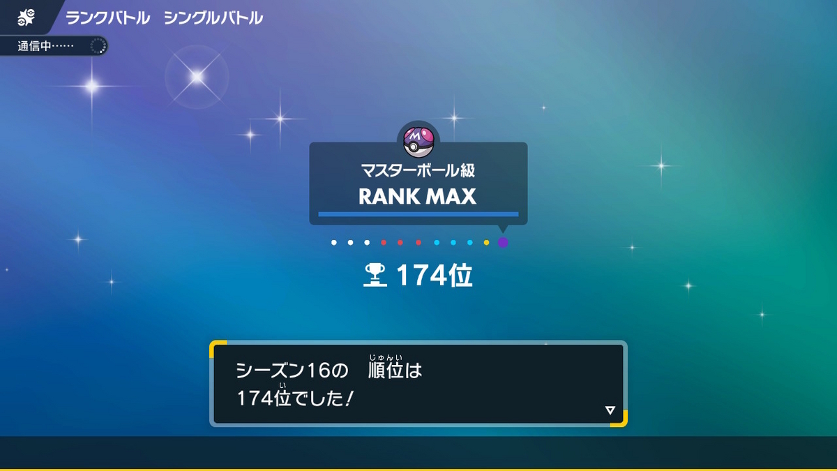今期は久しぶりに最終日2000帯で潜り続ける事が出来て、ポケモン対戦の楽しさを再認識出来たので対戦してくれた全ての人間に感謝。