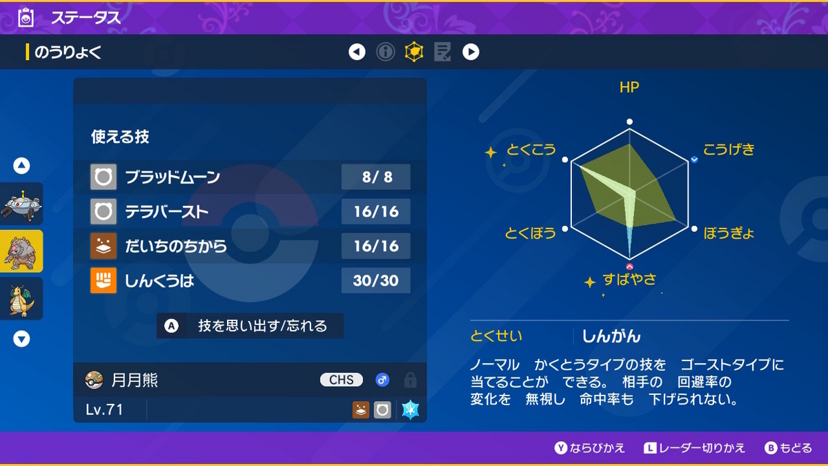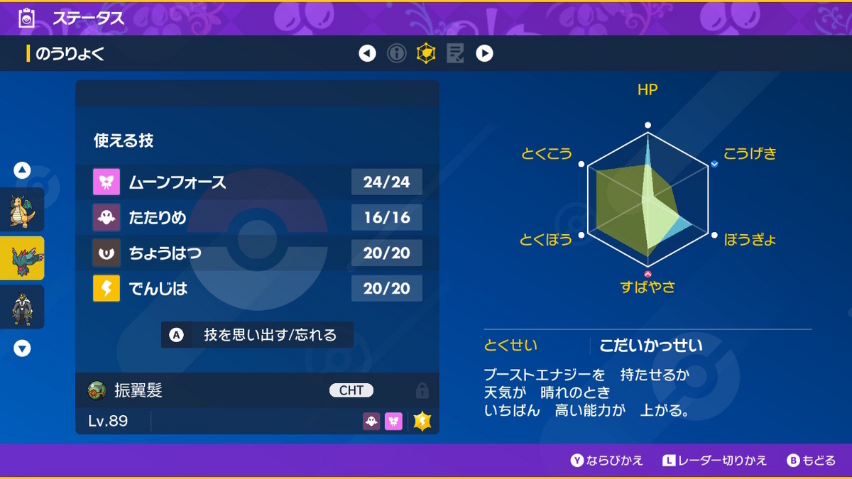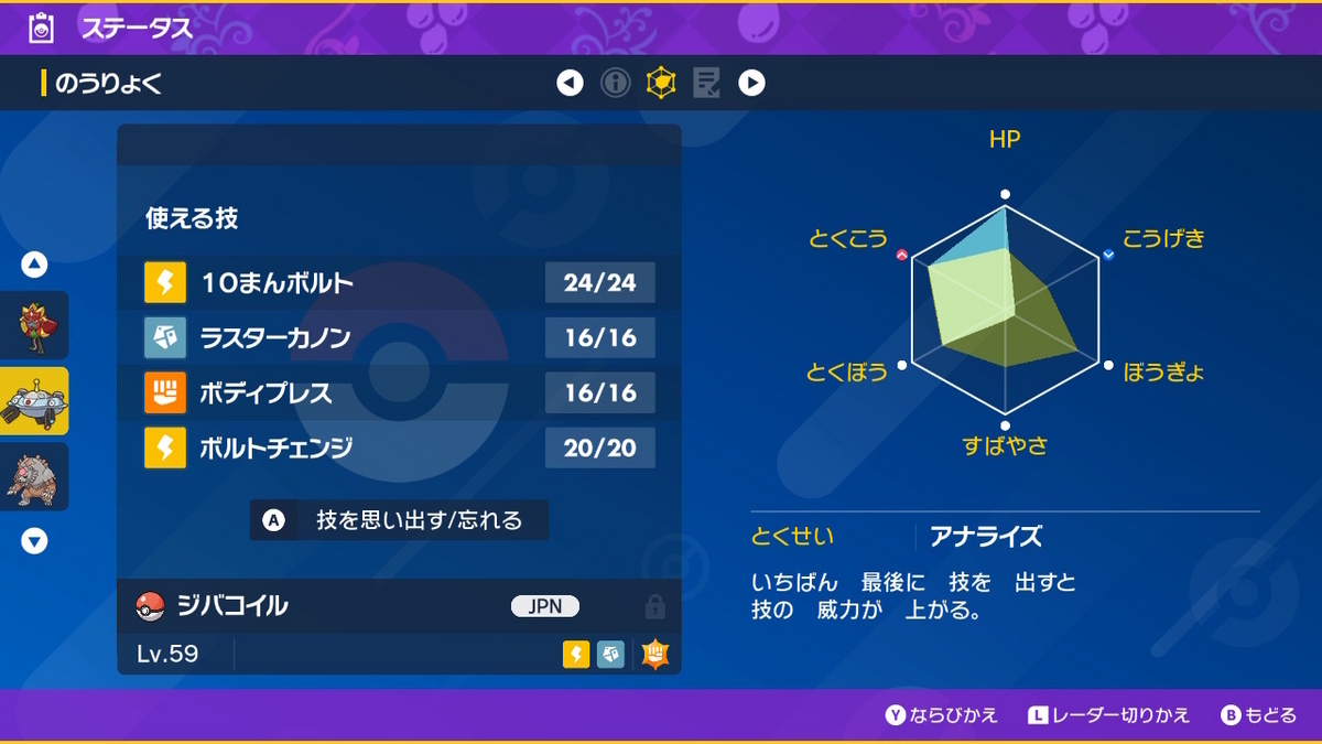 前期から使っていた圧倒的エースポケモン。ラス1に置いた時の信頼感やばかった。