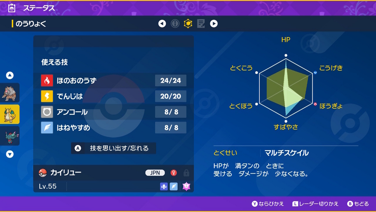 カイリューへの信頼感がヤバすぎて殆ど出せなかったため、べつの型の方がよかったのかもなーと思ったりもしていた。
