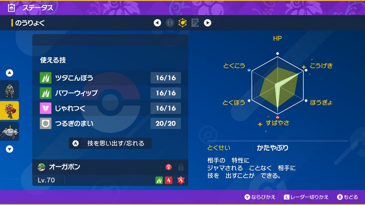 ラオス、パオ、オーガポンは大体こいつで誤魔化してた。ただ、ラオスとパオに関しては電気テラスの気配を感じたらアンコールから入った方が良い。
